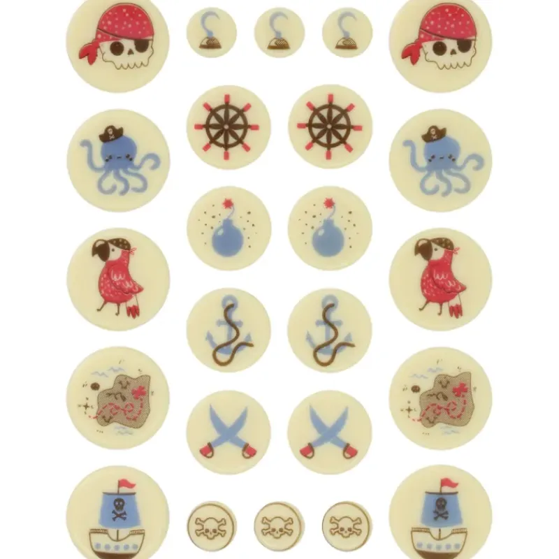Devenez de véritables petits moussaillons en exposant fièrement ces Décors Chocolat Blanc Pirate 24 pièces Chocolatree Valrhona.