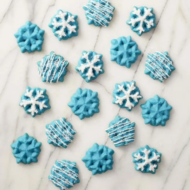 Pour décorer les biscuits confectionnées à l’aide de la Presse à Biscuits Wilton, attendez qu’ils soient complètement refroidis avant de les décorer avec du colorant en gel ou du chocolat fondu.