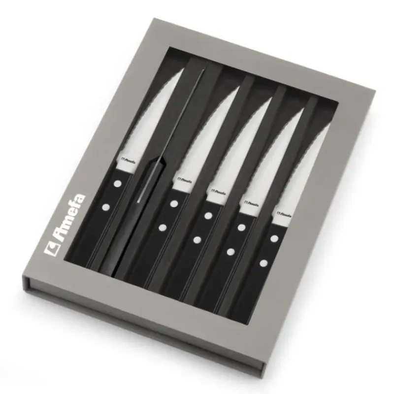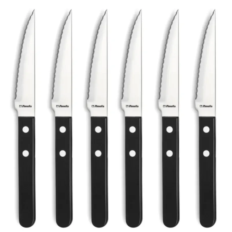 Coffret 6 Couteaux Steak Pizza Noir 21,5 cm Amefa