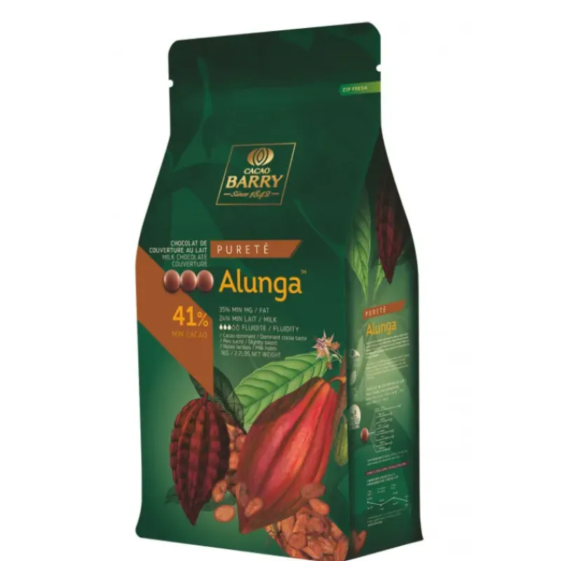 Découvrez le Chocolat au Lait Alunga 41% 1 Kg, un chocolat d’exception parfait pour les moulages, mousses et ganaches.