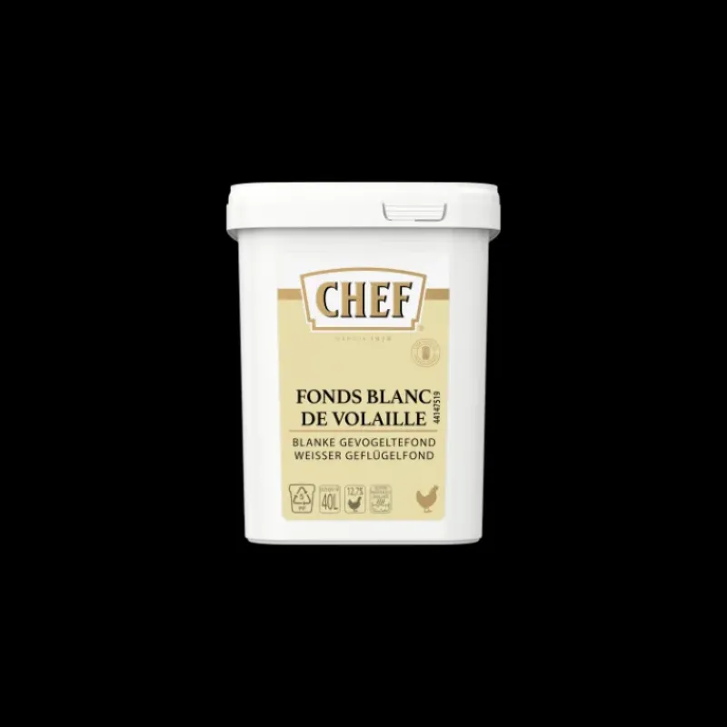 Fonds blanc de volaille : Base pour velouté de volaille et sauce crème, cuisson de légumes et de féculents, fricassées de volaille.