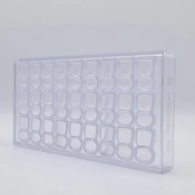 Ce moule chocolat vous permet de réaliser 27 bonbons en chocolat en forme de bouchons de bouteille de 3,5 x 2,4 cm chacun, pour des célébrations gourmandes à la fois originales et élégantes. Ce moule Chocolate World en Tritan, fabriqué en Belgique, vous garantit une sécurité, une qualité irréprochable, ainsi qu’un démoulage sans accrocs pour vos créations.