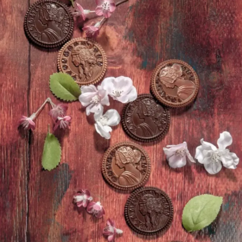 Pour des pièces en chocolat à croquer, optez pour le Moule Chocolat Pièce Chocolate World. Celui-ci dispose de 10 empreintes : 5 représentent un profil de femme façon Belle Epoque, tandis que les 5 autres représentent un profil de femme avec une coiffe.