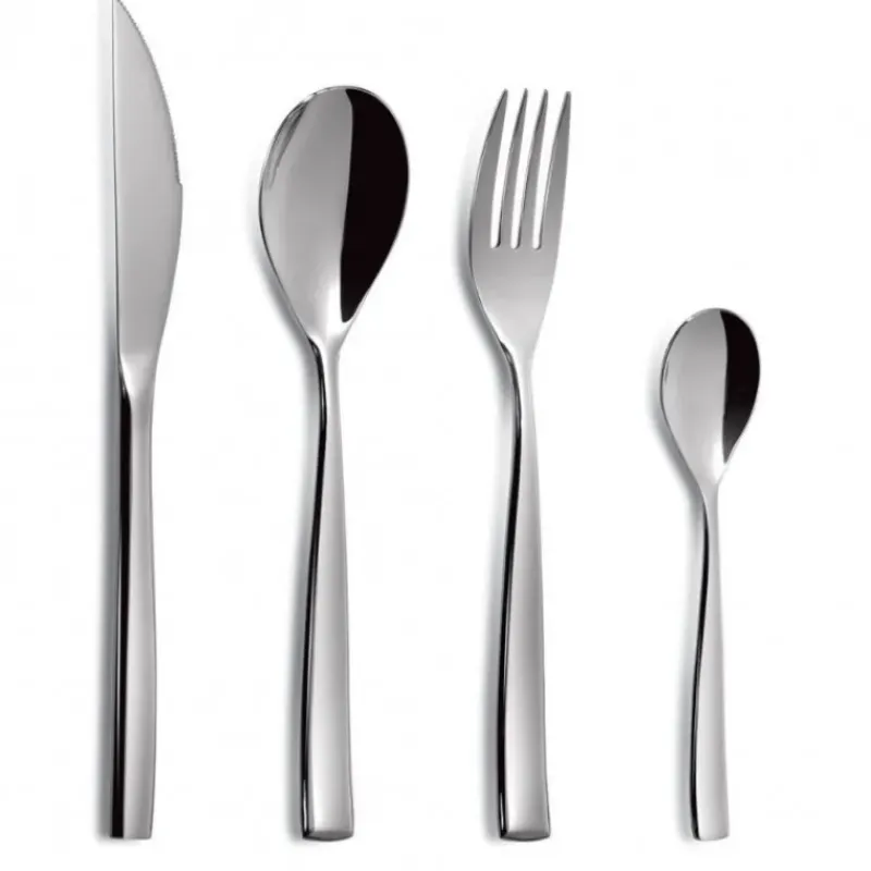 Les couverts de la ménagères Ibiza sont en acier inoxydable 18/10 (18 % de chrome pour résister à l’oxydation et 10% de nickel pour améliorer la neutralité alimentaire du matériau). L’acier inox 18/10 est considéré comme le meilleur acier pour des couverts de qualité, pour sa robustesse et sa neutralité alimentaire (il ne craint pas le jus de citron par exemple).
