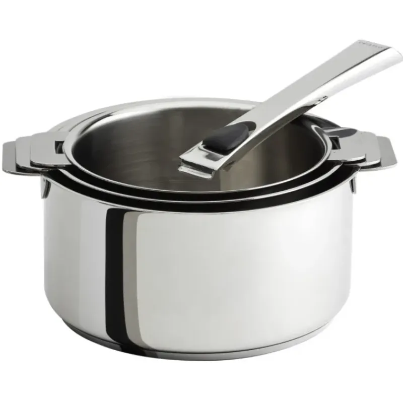 Lot de 3 Casseroles Inox Mutine avec 1 Poignée Amovible Casteline Cristel