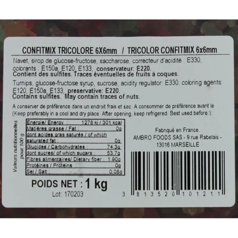 - Ingrédients : navet sirop de glucose-fructose saccharose correcteur d’acidité E330 cobrants E150a E120 E133 conservateur E220.