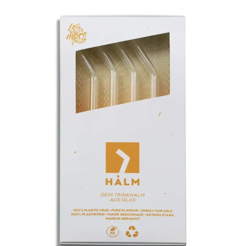 Paille Réutilisable en Verre 23cm courbée x4 HALM
