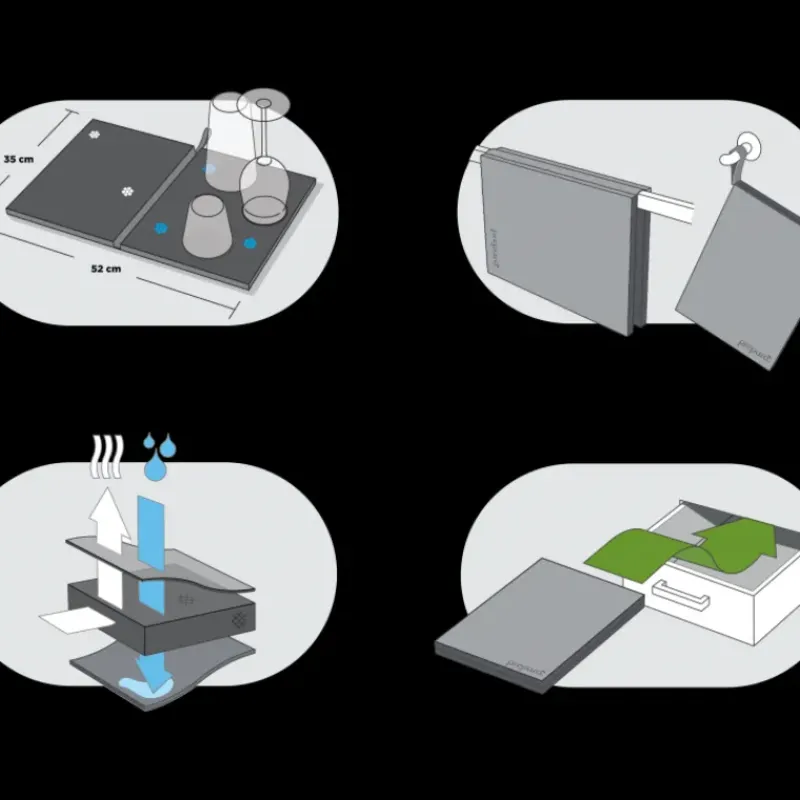 Plus efficace qu’un torchon, le Séchoir à Vaisselle Prepara absorbe jusqu’à 5 fois plus l’eau sur votre vaisselle. Possédant une structure en nid d’abeille, ce Tapis Séchoir 52 x 35 cm élimine les odeurs et possède des propriétés antibactériennes.