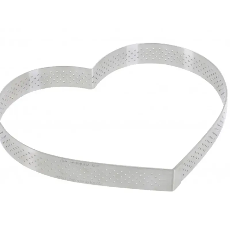 Faites de belles créations pour épater vos invité avec ce cercle perforé en forme de coeur. Ce cercle à tartes d’une hauteur de 2 centimètres, est fabriqué en acier inoxydable et avec des bords droits. Vous aurez ainsi une cuisson parfaite et uniforme pour une pâte lisse, dorée et croustillante.