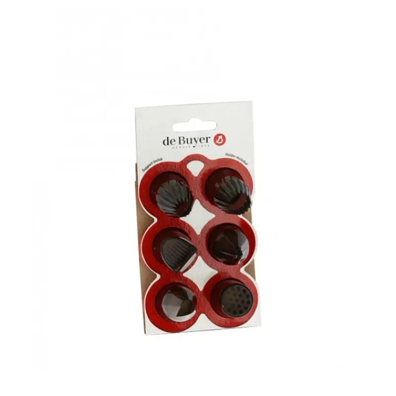 Ce lot de 6 Douilles à Pâtisserie est fourni avec un support en plastique dans lequel les douilles pourront être clipsées. Vous pourrez alors empiler vos supports à douilles, ou choisir de les accrocher pour les avoir à portée de main à tout moment. De plus, les Douilles en Tritan sont compatibles avec Le Tube Piston à Pâtisserie De Buyer : pour une utilisation simple et digne d’un professionnel.