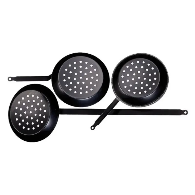 La poêle à marrons à trous dans le fond est un ustensile traditionnel, toujours réalisé en tôle d’acier pour sa robustesse. Ces modèles de poêles à marrons sont à utiliser exclusivement sur braise. Le manche long permet de remuer la poêle sans risque de se brûler.