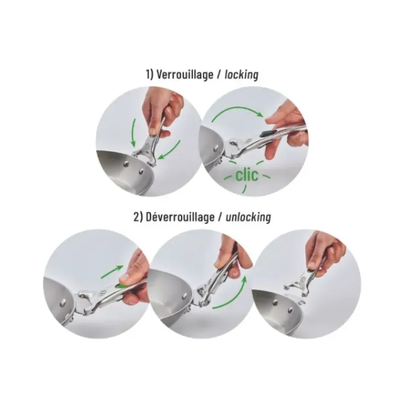 Fabriquée en fonte d’inox à finition poli brillant, cette poignée amovible allie élégance et durabilité. Les dimensions de 18,3 x 6,84 cm en font un choix idéal pour une utilisation quotidienne. Bien que ce manche amovible ne soit compatible ni avec le four ni avec le lave-vaisselle, son entretien est un jeu d’enfant.