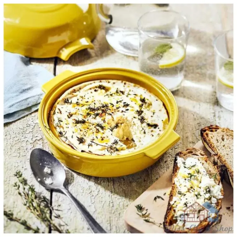Avec sa couleur jaune Provence, le plat au four Emile Henry donnera du peps à votre cuisine et à votre table ! Le cheese baker a pour but premier de cuisiner du fromage mais vous pouvez tout à fait le détourner pour réaliser de petites préparations au four comme un petit clafoutis ou un flan.