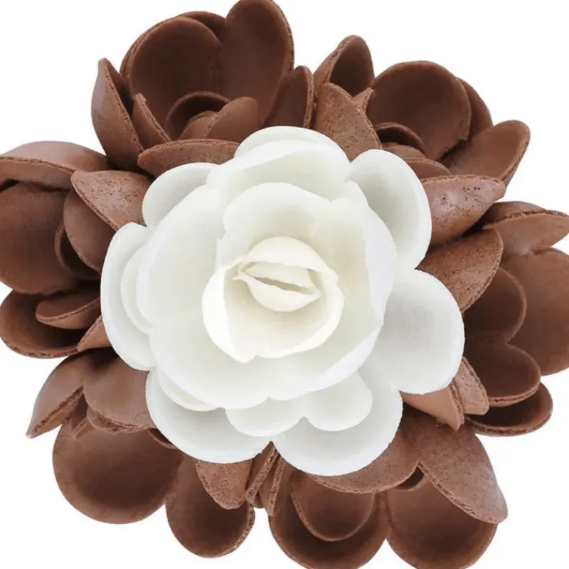 Décorez vos gâteaux avec ces bouquets de Fleurs en Azyme comestibles Blanc et Marron. Cette décoration en azyme pour gâteau Florensuc vous permettra de sublimer vos créations.
