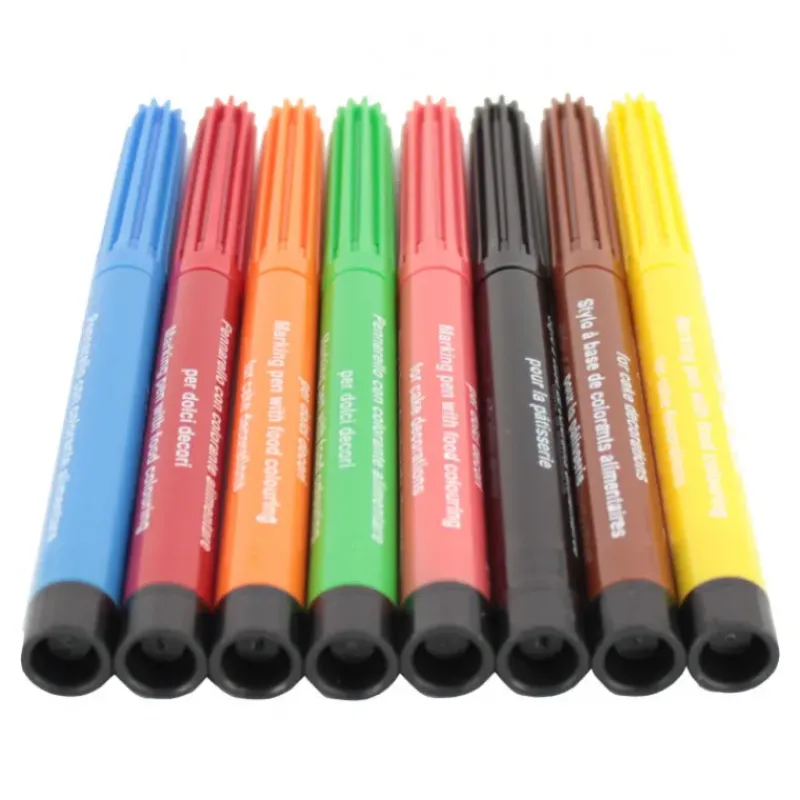 Ce lot de feutres alimentaires Florensuc contient 8 feutres de couleurs différentes ! L’encre de ces feutres est totalement comestible et est idéal pour écrire et dessiner sur toutes vos pâtisseries et la pratique du Cake Design ! Pâte à sucre, Gâteaux, cookies, biscuits, macarons, mignardises, cupcakes… Tout est maintenant personnalisable ! Ces stylos alimentaires conviennent également pour dessiner sur les feuilles d’azyme, les stickers alimentaires ou même sur le fond d’une assiette. Transformez les repas, les anniversaires et les goûters créatifs en autant de moments magiques :