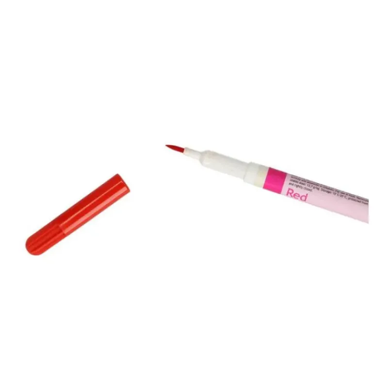 Vous ne trouvez pas de décoration toute faite qui vous correspond ? Le feutre alimentaire FunCakes sera parfait pour personnaliser vos décors ! Dessinez tous les détails que vous souhaitez sur les surfaces lisses, sèches, dures ou demi-dures de vos entremets à l’aide de ce feutre comestible. Découvrez un feutre alimentaire d’une belle couleur rouge pour former un habit de Mickey ou encore déclarer votre amour à la personne qui vous rejoint pour dîner… Une belle rose rouge passion, de petits coeurs, le message sera clair !