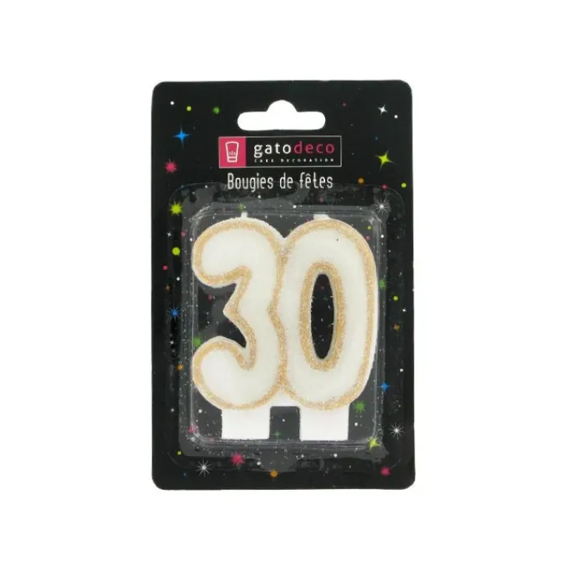 Soufflez vos 30 ans sur le gâteau d’anniversaire avec cette Bougie Anniversaire 30 ans Gatodéco. Brillante avec ces contours dorés et pailletés, la bougie donnera le ton de la fête (anniversaire, anniversaire de mariage…).