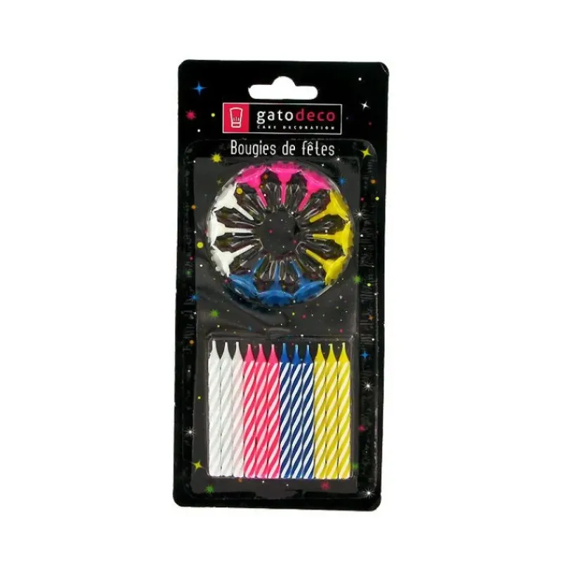 Bougies Torsadées Fines Assorties (x12) Gatodéco