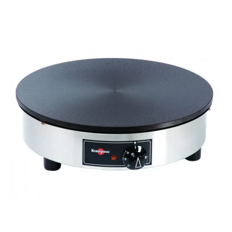 La crêpière professionnelle Ø40 cm Krampouz dispose d’un thermostat réglable de 50 à 300°C. Son témoin lumineux permet de voir en un coup d’oeil si elle est prête à être utilisée. La crêpière professionnelle Krampouz repose sur trois pieds en plastique qui lui assure une bonne stabilité.