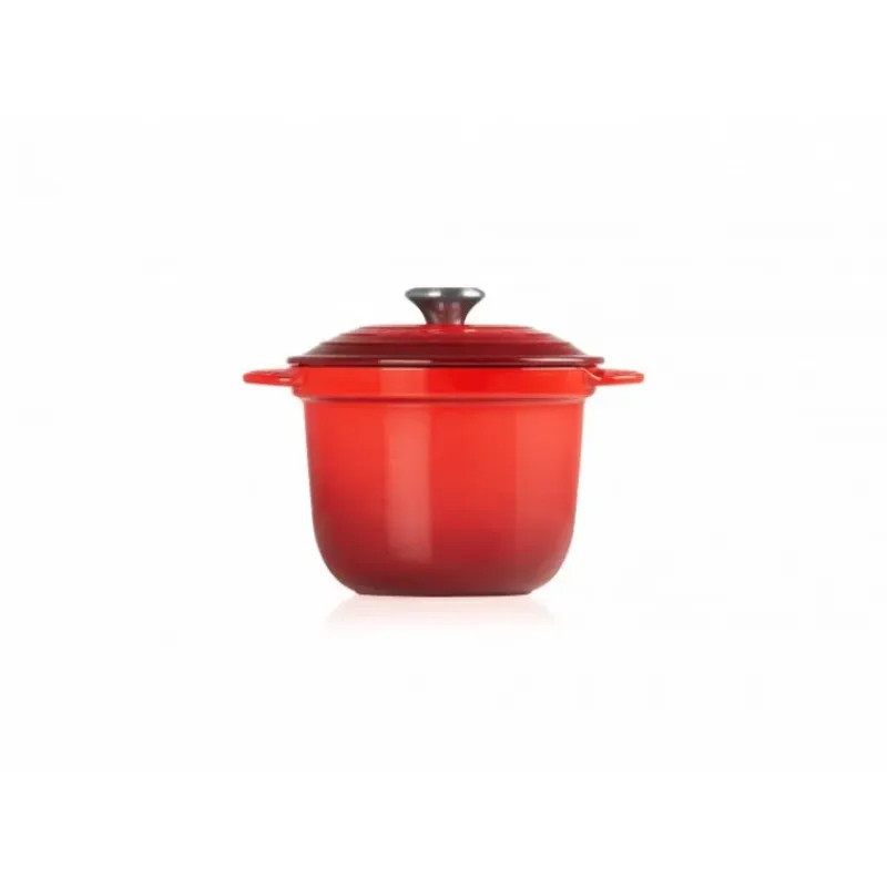 La cocotte en fonte Every Le Creuset est robuste (garantie à vie) son intérieur en émail noir mat vous assure résistance dans le temps et aux rayures. La cocotte haute rouge cerise est munie de deux couvercles : un couvercle bombé en fonte et un couvercle intérieur anti-débordement en céramique. Ce dernier est muni de deux perforations assurant ainsi l’évacuation de la vapeur et la bonne hydratation lors de la cuisson pour des aliments savoureux et tendres.