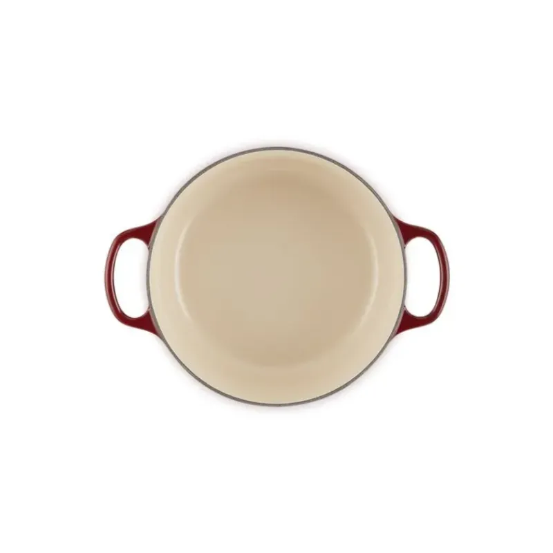 Concoctez de délicieux repas dans votre Cocotte en Fonte Ronde 24 cm Garnet Bouton Doré Le Creuset Signature pour toute la famille.