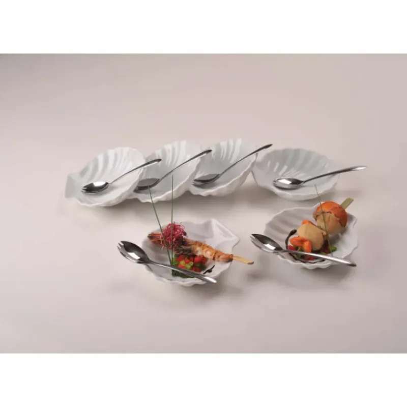 LeBrun présente ce coffret avec 6 coquilles Saint-Jacques en porcelaine blanche avec ses 6 cuillères mixtes (tête cuillère et fourchette) pour une dégustation des plus délicieuses.