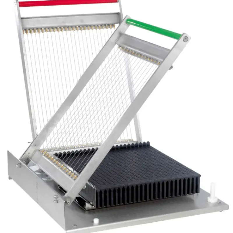 La guitare Kali vous permettra de réaliser des découpes rapide et régulières de chocolats, bonbons, ganaches, pâtes d’amandes, pâtes de fruits, canapés carré, losange, rectangle…