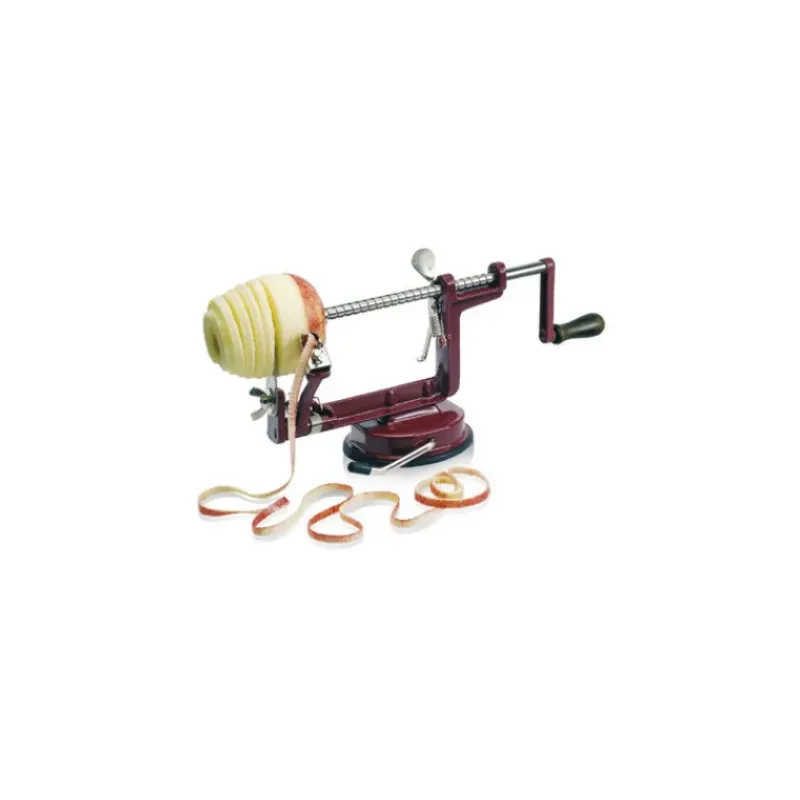 Pèle pommes : épluche, tranche et vide la pomme en une seule opération. Peut être utilisé pour éplucher les pommes de terre et les trancher (chips…)
