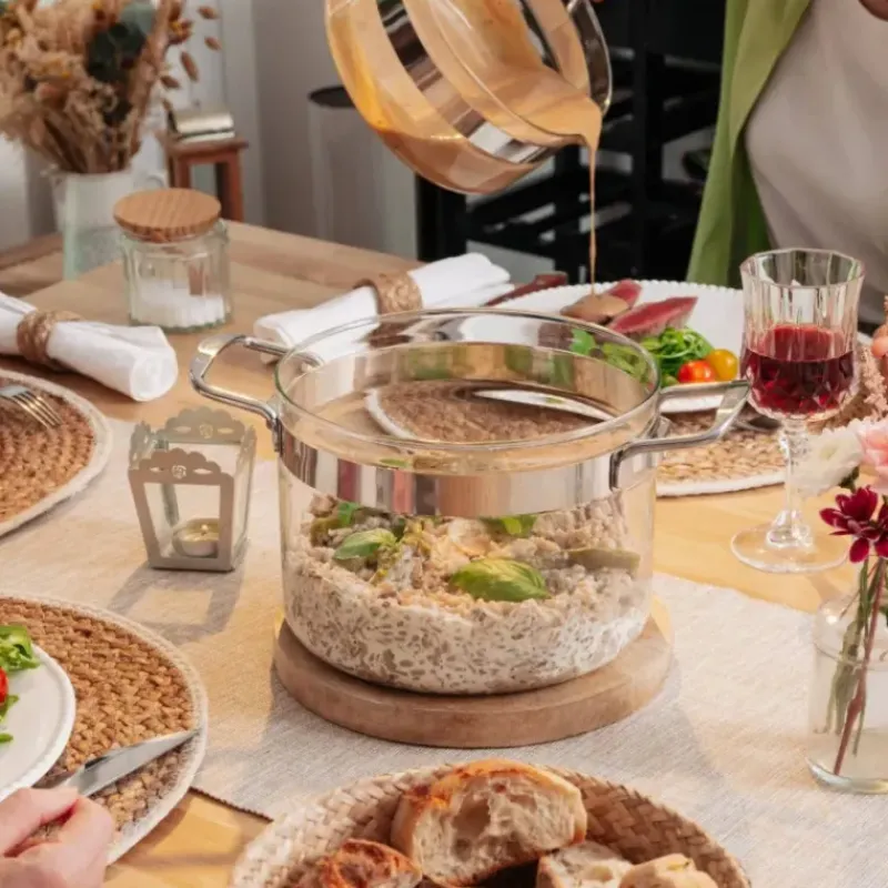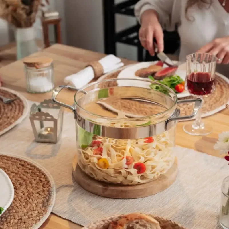 Le faitout en verre est l’alliance parfaite de l’esthétique et de la fonctionnalité, pour des repas réussis et sains, en toute simplicité. Compatible avec toutes les sources de chaleur, y compris l’induction (avec disque relais adaptateur), ce faitout cuisine bénéficie d’une anti-adhérence naturelle.