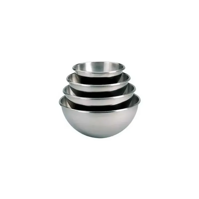 Cul de poule , ou bassine à pâtisserie demi-ronde, en acier inoxydable et fond arrondi avec une petite base plate afin de maintenir le cul de poule à droit sur une surface plane.