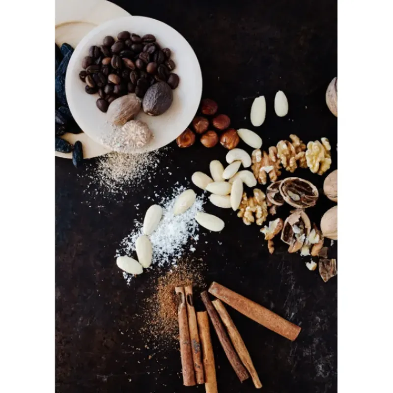 - Utilisations : noix de muscade, cannelle, chocolat, noix, grains de café, fèves tonka