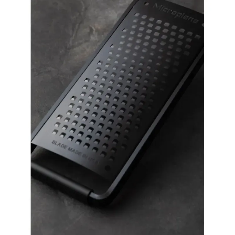 Issue de la dernière collection Microplane : Black Sheep, cette râpe Gros Grains possède un style entièrement noir qui attire le regard. Pour les personnes soucieuses des apparences, cette râpe ne déçoit pas. Elle reflète à l’extérieur la qualité de sa conception.