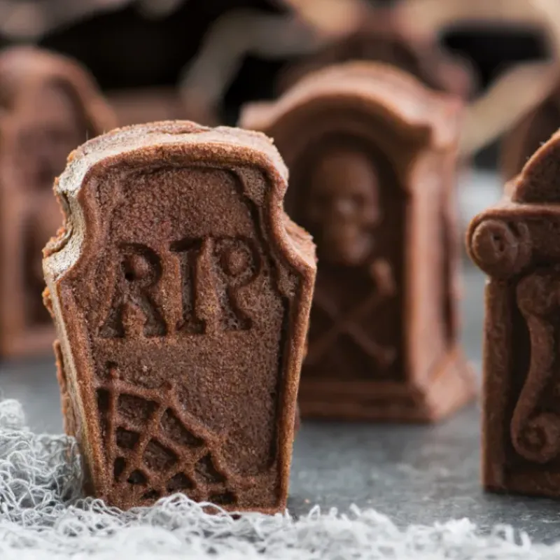 Profitez d’une balade savoureuse dans un cimetière où sont enterrés les meilleurs gâteaux que vous ayez créé. Nordic Ware vous propose de quoi faire d’Halloween une fête aussi délicieuse que terrifiante. Avec le moule pierres tombales, vous pourrez donner l’impression à vos convives d’être dans un véritable cimetière ou nombres de contes effrayants prendront vie.