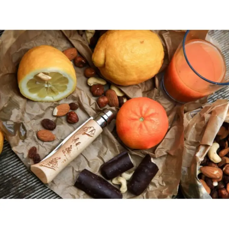 Adeptes de sport et supporters du Tour de France seront bien équipés pour cuisiner et bricoler grâce au couteau N°8 Opinel. Le manche en bois de ce couteau est gravé de magnifiques motifs symbolisant les joies du véhicule à deux roues. Ces dessins élégants n’enlèvent en rien la praticité de l’ustensile. En effet, le couteau de poche conserve un tranchant remarquable ainsi qu’une excellente prise en main.