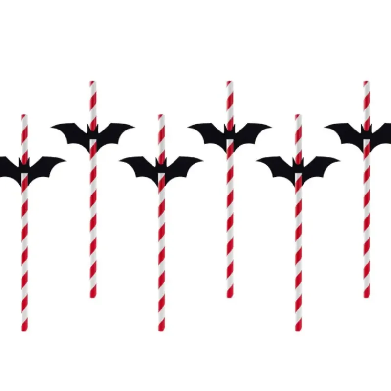Pailles en Papier Halloween Chauve-Souris PartyDéco (x6)