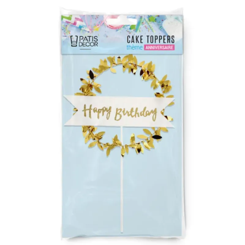 Cake Topper Happy Birthday Couronne Dorée Patisdécor