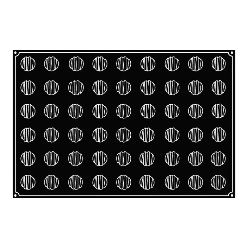Ce moule en silicone souple résiste aux basses températures (- 40°C) mais aussi aux fortes températures (+ 300°C) vous laissant ainsi un large choix quant à l’utilisation que vous pourrez en faire. Notez que ce moule vous assurera un démoulage net et sans bavure, puisque le moule est anti-adhérent, vos 54 Mini-Ronds Rayés seront donc parfaitement identiques.