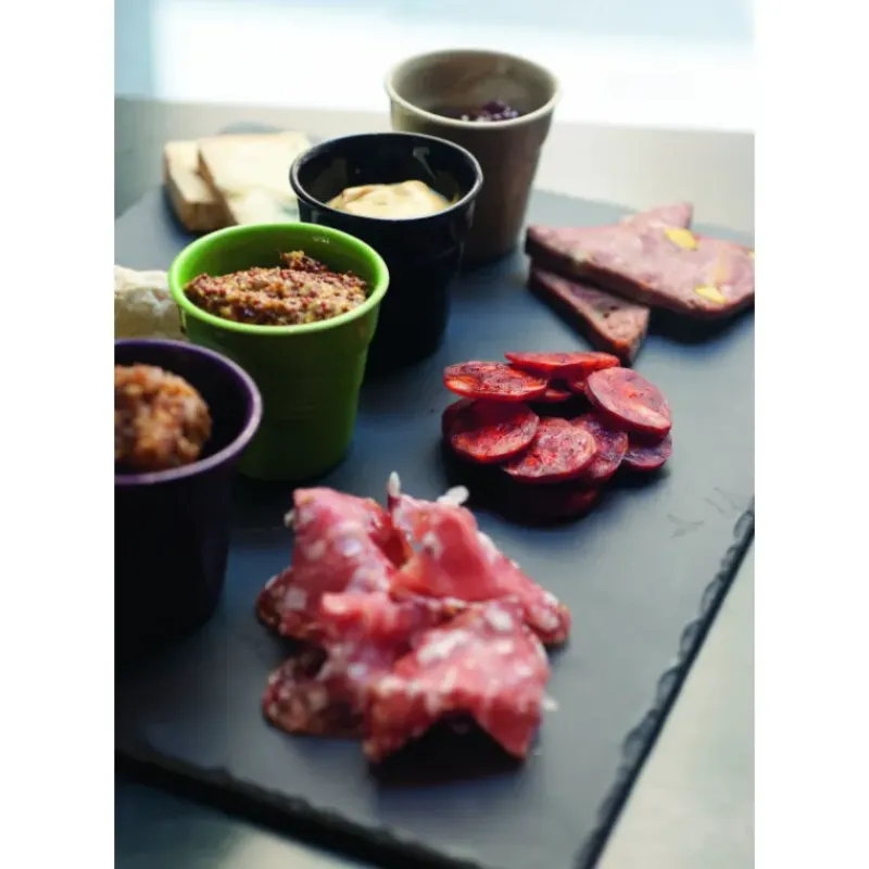 Ce plateau en céramique noire imite à la perfection l’ardoise tout en offrant les avantages de la porcelaine. La collection Basalt Revol répond à une demande des professionnel, esthétique travaillé et manipulation facile.