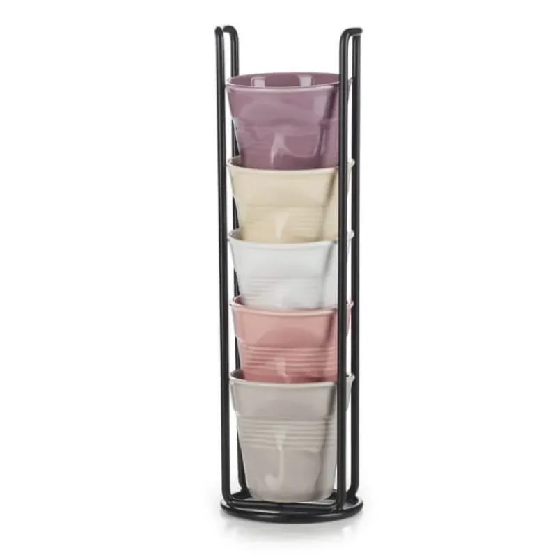 Pour ajouter un peu d’ordre à votre cuisine, procurez-vous le porte tasses Revol. Pensé pour supporter 6 gobelets froissés de 8 cl, ce support pour tasses prend peu de place et se glissera sans problème à côté de votre machine à café. Il assure un excellent empilage de vos tasses ainsi qu’un excellent maintien de ces dernières à la verticale. Composé de barres en inox, le porte tasses noir est robuste et ne se déformera pas aisément.