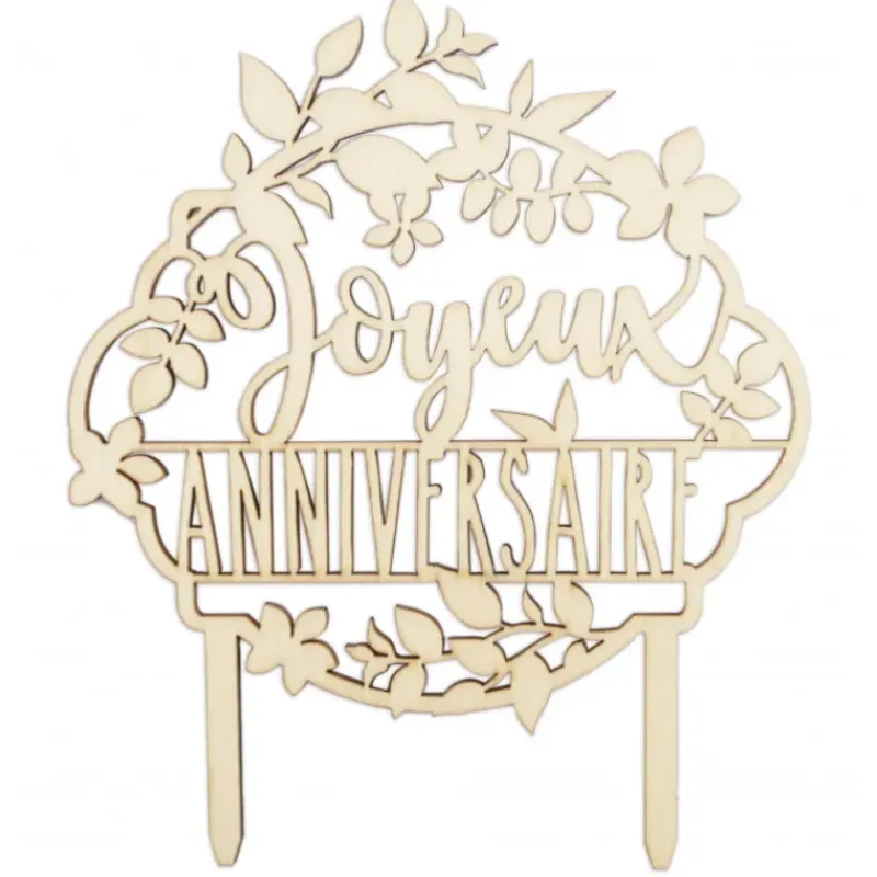 Cake Topper Bois Joyeux Anniversaire 12,9 cm Scrapcooking