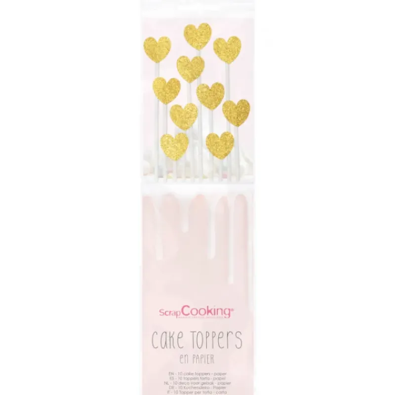 Cake Topper long 20 cm cœur doré (x10) ScrapCooking
