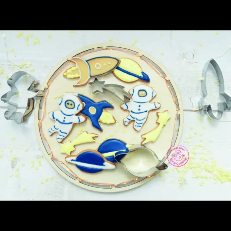 Enfilez votre plus belle tenue d’astronaute et préparez-vous au décollage, la fusée de la gourmandise va démarrer en direction de vos estomacs. Préparez des biscuits faits maison créatifs et délicieux avec le lot thème espace Scrapcooking. Vos enfants prendront davantage de plaisir à vous aider en cuisine avec les découpoirs inox thème espace. Il leur suffira de les appuyer sur la pâte étalée pour détailler la forme d’une fusée, d’un astronaute, d’une étoile filante, ou bien d’une planète. Après la cuisson, il ne restera qu’à décorer vos biscuits en fonction de leur forme avec du glaçage par exemple.