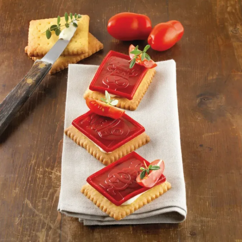 Facile à utiliser, ce kit vous invite à confectionner des biscuits gourmands ornés de reliefs, mettant en scène des motifs de pingouin, de cerf et de bonhomme de neige. L’emporte-pièce reprenant la forme emblématique d’un célèbre biscuit français vous permettra de réaliser de délicieux petits gâteaux maison au croquant irrésistible. Le moule en silicone platinium, aux dimensions de 6,4 x 6,3 x 4,5 cm, façonne des tablettes de chocolat de 5,5 ml chacun, totalisant une capacité de 33 ml.