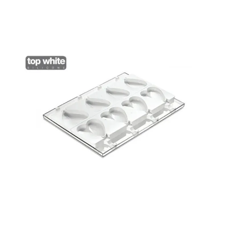 Facile d’utilisation, ce moule à glace est fait en silicone souple et vous assure un démoulage facile et sans risque. Le bâtonnet en bois se plante dans l’endroit prévu à cet effet, et vous permet d’avoir une prise en main pour décorer votre glace du moule. Ensuite vous n’aurez plus qu’à plier le moule pour le retirer entièrement. Le moule silicone est vendu avec une plaque rigide pour faciliter son transport de votre plan de travail à la cellule de refroidissement.