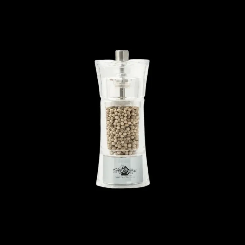 Retrouvez se superbe poivrier de chez Terre Exotique, conçus par la célèbre maison artisanale Zassenhaus. Connu pour leurs produits de qualité premium, ce moulin à poivre transparent en acrylique donne un aspect épuré, moderne et intemporel à cet objet du quotidien. Le savoir-faire apporter par Zassenhaus a conduit la marque de faire breveter leur mécanisme de moulure, permettant de broyer le poivre de 6 tailles différentes. Personnalisez votre mouture à l’aide des différents niveaux allant du grain de poivre le plus fin, au plus épais.