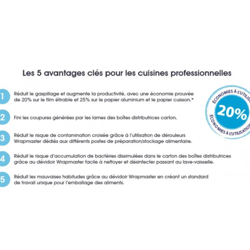 Idéal pour les particuliers et pour les professionnels, le Dévidoir Cuisine Wrapmaster Compact vous séduira par son faible encombrement et sa simplicité de manipulation.